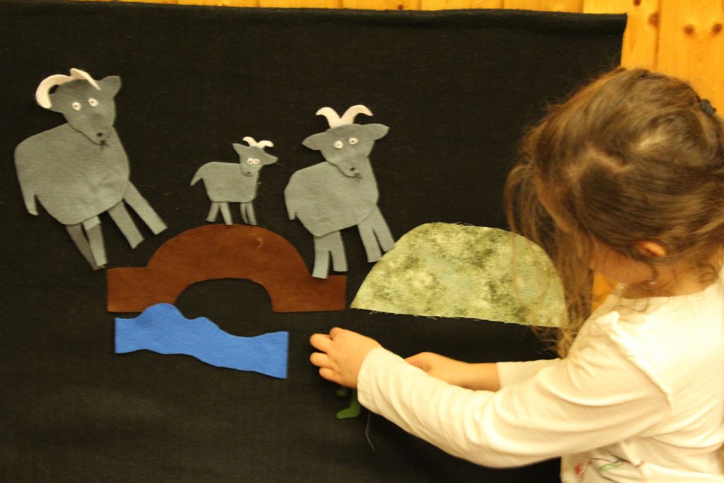 Diese Gruppe arbeitete mit den Geschichten „The Three Billy Goats Gruff“–was wir immer wieder gerne nachspielten– und „Little Red Riding Hood“. Dazu kam die Uhrzeit auf Englisch zu erfragen und antworten zu können (What time is it? – It’s two o’clock), sodass wir „What Time Is It, Mr. Wolf?“ spielen konnten–passend zu der Geschichte mit dem großen, bösen Wolf!